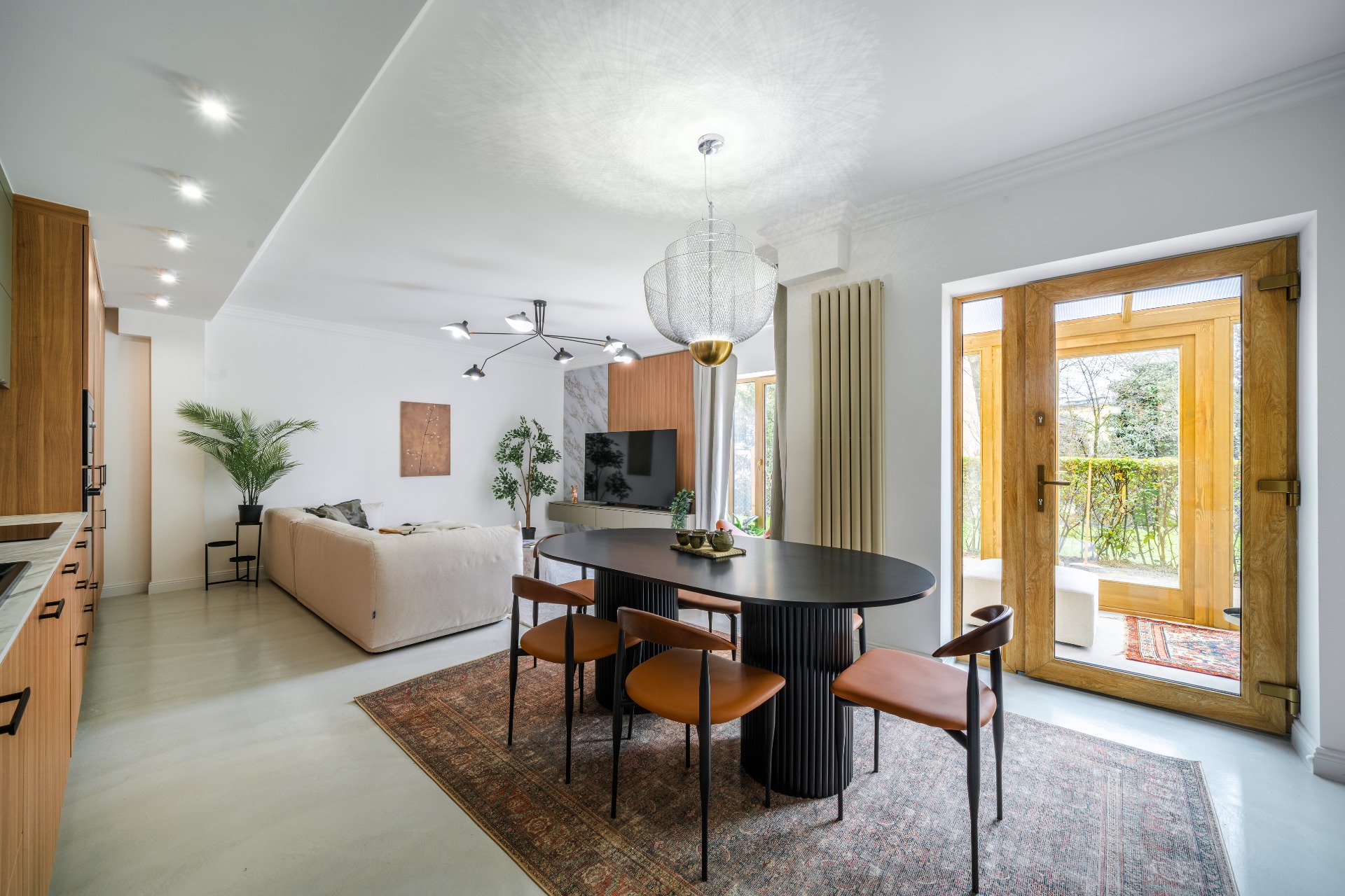 A kertkapcsolatos 110 m2-es, teljes körben felújított kertkapcsolatos lakás, fűtött télikerttel és saját használatú kertrésszel.